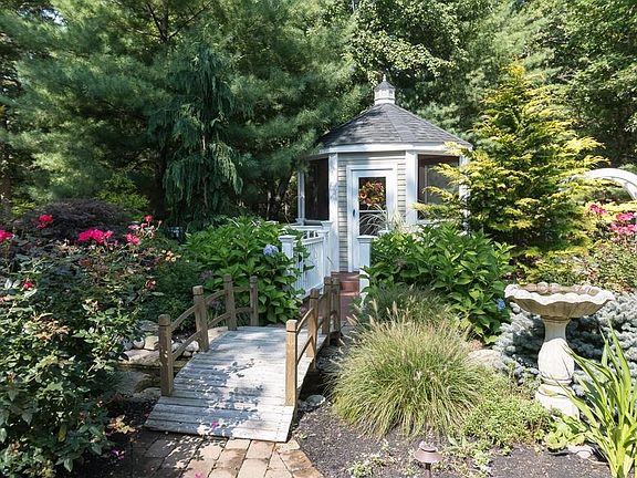 Gorgeous inside and out describes this beautiful 4 bedroom Colonial in sought after Gurnett Woods. The outdoor oasis caters to the nature lover and gardener, whether you're relaxing in the saltwater hot tub or warming up by the fireplace in the gazebo. The colorful gardens feature a Koi pond with water features - breathtaking! Indoors you'll find a spacious living room with gas fireplace, gleaming hardwood floors throughout the first floor, and an inviting kitchen offering granite countertops, center island, walk-in pantry, copper backsplash, and a few personal touches (check out the custom spice rack!). Walking up the extra wide staircase you'll discover 4 bedrooms including the spacious Master bedroom suite complete with walk-in closet and master bath. The 3rd-floor family room is an ideal game room, media room or office! In the lower level you'll discover custom built workbenches and storage closets - perfect for the woodworker! Don't hesitate!
