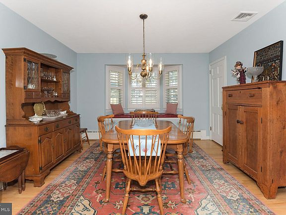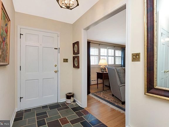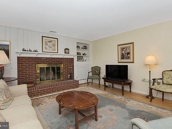 Beautifully maintained all-brick, four bedroom, 2 bath ranch on a nicely landscaped corner lot. A charming brick covered porch welcomes you inside, where a slate foyer opens to a formal living room that features a woodburning brick fireplace with a raised hearth, flanked by built-in shelving. The eat-in kitchen boasts a spacious garden window, stainless steel appliances, 42-inch cabinets and Corian countertops. Flowing seamlessly from the kitchen, a sunroom--equipped with heating, air conditioning and a ceiling fan--offers a perfect space to relax while enjoying views of the patio and backyard. The formal dining room is highlighted by a beautiful bow window with a cozy built-in window seat. The primary bedroom suite features a walk-in closet and an en-suite bathroom with a shower stall and ceramic tile flooring and surround. Three additional generously-sized bedrooms offer ample closet space. The hall bathroom includes a tub/shower combo with ceramic tile flooring and surround. Hardwood flooring runs throughout the home, complemented by elegant custom plantation shutters on every window. The fully finished, carpeted basement provides extra living space...perfect for a family or recreation room. The basement also has a workroom with a work bench. Additional highlights include an oversized two-car attached side-entry garage, cement driveway, a furnace and air conditioning unit replaced less than six months ago and a washer and dryer updated in 2019. Great for commuters...nearby the Interstate and about a 10 minute drive to Hamilton Train Station. Nearby The College of NJ and Rider University.