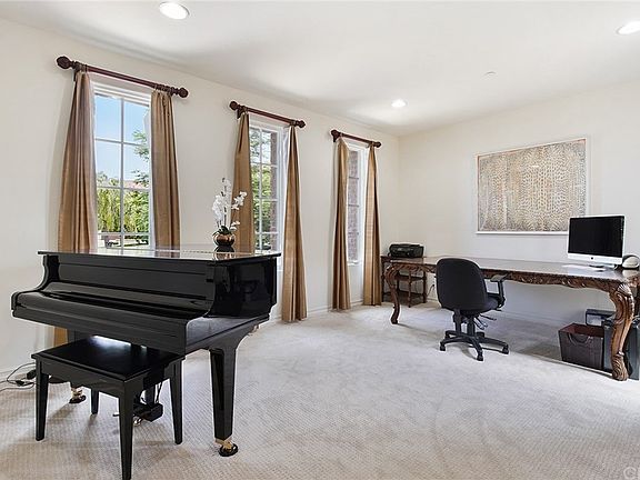 Welcome home to this beautifully appointed Pienza Plan 2. Serene Rolling Hills, Ocean & Catalina views from 2nd story. Quality upgrades include Travertine flooring with encased medallion at entry, hardwood flooring, sculptured carpet, iron railing at staircase, security system & more. Entertaining made easy begins in the gourmet kitchen with granite counters, stainless appliances, center island/breakfast bar with chef's pot rack, walk-in pantry, butler's pantry & eating area all opening up to the family room & French doors leading to the professionally landscaped rear yard. Perfect for indoor/outdoor living with private jacuzzi/spa, stone patio & built-in BBQ center with bar & refrigerator. Luxurious secondary bedroom suites with French doors open up to a covered Veranda/deck with their own baths featuring travertine & mosaic accents & glass shower enclosures. Oppulent master suite with fireplace, Marble & Travertine in the bathroom, jetted Roman tub, walk-in custom closet, etc.