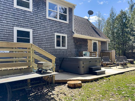 Step outside onto the back deck, and you'll find a delightful hot tub, perfect for unwinding under the stars. The cedar shingle siding exudes classic New England charm, and the well-maintained, paved driveway leads to ample parking for up to four vehicles.