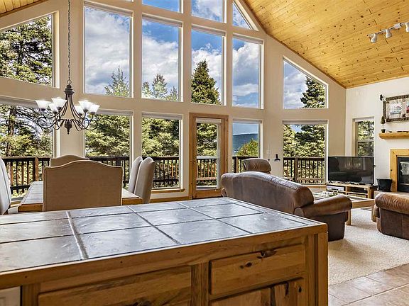 Well constructed three bedroom, three bath home on a nicely thinned acre, oriented Northeast, toward Baldy and Touch Me Not. Beautiful wall of windows makes you feel secluded although you are just minutes from the PGA rated golf course and ski area. Two living areas/ bunk room allow for a multi generational family living. Hiking trail system just steps away. Deck space is perfect for BBQ's and outdoor life. Second deck off primary bedroom.