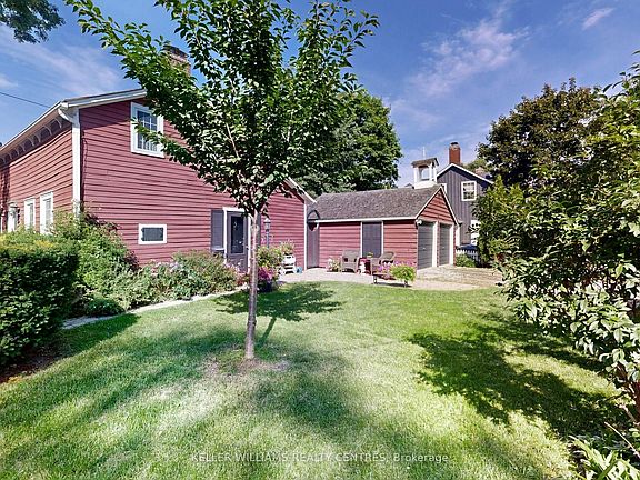 Welcome to the Red Cottage, A Chapter of Thornhill History! A heritage home built in 1846, nestled in the heart of Thornhills quaint and historic village. This lovingly restored gem blends timeless character with modern comfort. Set behind a charming white picket fence, the 2-storey residence showcases a classic combination of clapboard and board and batten with cedar shake roof and a deceivingly spacious layout. Inside, you'll find 3 bedrooms plus a den, 2 baths, and the convenience of second-floor laundry and the option of using the main floor as a primary bedroom. The home was thoughtfully and professionally restored and updated by renowned architect B. Napier Simpson Jr., with great care taken to preserve its historic heritage warmth and detail. Outdoors, a private fenced yard bursts with an overflowing multi-coloured flower garden, creating a picturesque backdrop for every season. A double detached garage adds practicality with direct access to back garden patio and kitchen side door. Honouring its historic roots yet designed for contemporary living, the residence has been fully modernized with 200-amp electrical service, central heating, and air conditioning, delivering the comfort and efficiency of today without compromising its enduring character. Rich with history and surrounded by the character of a boutique niche neighbourhood. A vibrant community, with specialty grocery and restaurants, and transit the Red Cottage offers a rare opportunity to own a treasured piece of Thornhills past while enjoying the comforts of today.