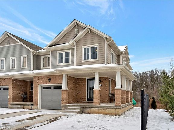 Beautiful 2-story freehold townhome in the desirable West Brant community, now available for sale! This impressive property offers 3 generously sized bedrooms, 2 full bathrooms, and ample space for family living. Upon entry, you'll be welcomed by a bright foyer that leads to a hallway featuring a convenient 2-piece bathroom and a laundry room with direct access to the attached garage. The open-concept kitchen and living area is the heart of the home, filled with natural light and offering access to the backyard patio. The second floor boasts a spacious primary bedroom complete with a walk-in closet and a private 3-piece ensuite. Two additional well-sized bedrooms and a 4-piece bathroom complete this level. The fully finished basement provides the perfect recreational space for family gatherings, complete with a 2-piece bathroom. Additional highlights include a 1-car attached garage and a double driveway offering parking for two more vehicles. The backyard backs onto scenic trails and green spaces, offering a peaceful retreat. Conveniently located near schools, shopping, trails, and all the amenities Brantford has to offer! Book Your private showing today!