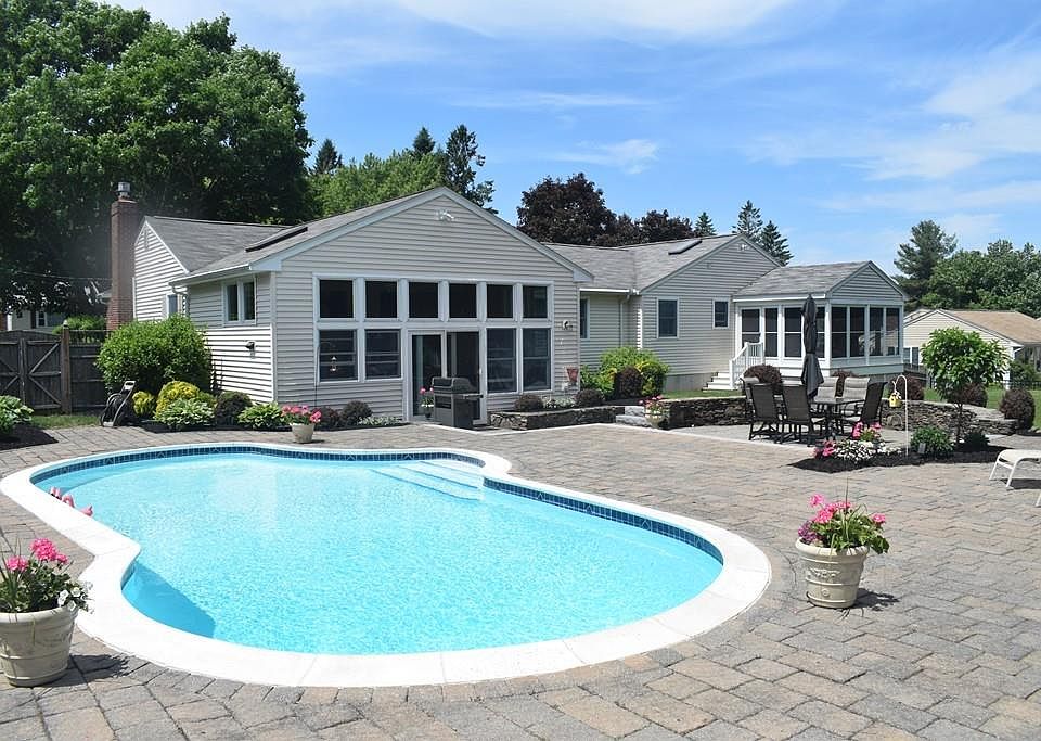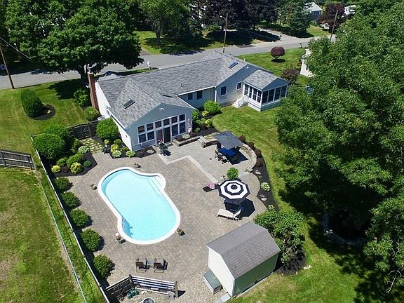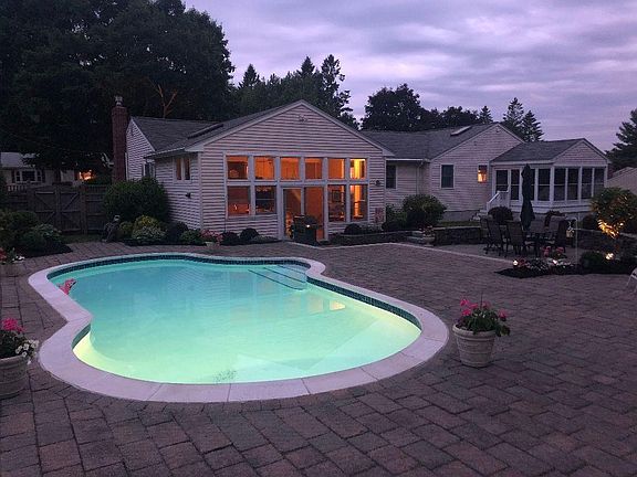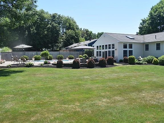 Meticulously cared for stunning property. It says Ranch, but don't be fooled. When you tour the home, you will think you are on vacation in your private villa! Huge master suite was added in 2001 including large bathroom, walk-in closet and 3 season porch. A Kitchen was added in 2003 that gives gorgeous views of the backyard. Radiant heated floors and tastefully designed and decorated. Large windows to allow light throughout the first floor. Gleaming hardwood floors throughout all the bedrooms, living room and dining room. 4 total bedrooms, including one with an additional 1/2 bath. Large finished basement with lots of storage and excellent area for media room or playroom. Walk out to the 2 stall garage. Backyard has a picturesque heated fiberglass lined gunite saltwater pool. Manicured landscaping adds to this backyard oasis. This home is an absolute pleasure to show. You will not be disappointed. Only thing to do is pack your bathing suits and get ready to relax!