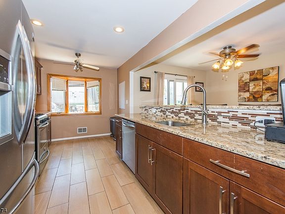 Beautiful split level features an updated kitchen with granite, stainless appliances, and breakfast bar, spacious master with full bath, Formal dining room, living room with stone fireplace, family room with slider to the back yard, hardwood floors throughout, New roof, vinyl siding, insulated windows, central air, huge 2 tier deck, covered porch, flat fenced yard, and more!