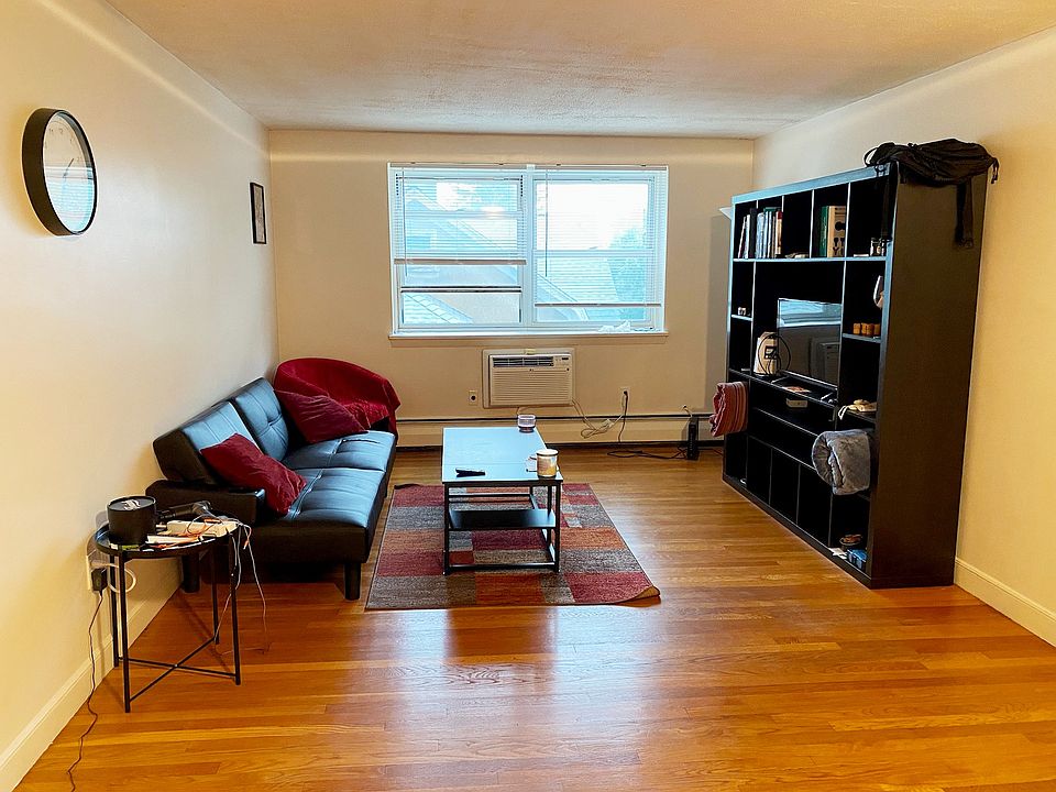 Sunny top floor corner one bedroom unit with an open floor plan, spacious living room, dining area off the kitchen, large bedroom, hardwood floors throughout, renovated bathroom, and a secure unit-dedicated storage room. The unit is freshly painted throughout with a granite countertop, newer kitchen appliances and a new A/C. In building laundry. Commonwealth Square is a professionally managed condominium community in a great location between Boston University and Boston College, with 3 minute walk to the Allston and Summit, T stops on the B Greenline, and near buses 57, 65, 86 & 66, and only two blocks to Whole Foods! Heat and hot water included, tenants responsible for all other utilities. Available August 1st, 2025. Heat and hot water included, tenants responsible for all other utilities. Available August 1st, 2025 for minimum 12 month lease.