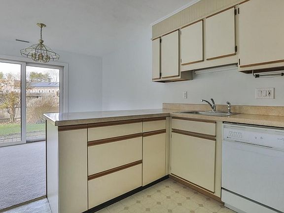 INCLUDES HEAT, HOT WATER, WATER, GAS FOR STOVE, TRASH REMOVAL, PLUSH LANDSCAPING, POND, POOL just steps away, TENNIS just steps away, CLUBHOUSE, GARDEN PLOTS, WASHER AND DRYER, professionally managed with in house management. Gorgeous new high- end laminate wood look just installed. End unit with open floor plan with beautiful landscape views, shows beautifully! Come see this sun-filled first floor home, fireplace living room and extra-private patio accessed from sliders with stunning landscaping enhances the views from the living room and dining area. No need to do anything; just move right in! Freshly painted with sophisticated soft colors that will enhance all styles of furniture, carpeting one year old. New washer and dryer included in the home. Steps from Train to Cambridge and Boston, shops, restaurants, playground, library, hospital and medical facility are an easy walk from this home. On site management makes for an easy lifestyle! Some furniture can be used or removed.