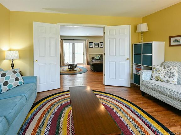 Welcome to 14 Cornelia Drive - a stately 3 bed 2.1 bath colonial situated on a cul de sac with a very private location A bright double foyer welcomes you with a classic center hall layout leading straight to the kitchen with the formal dining room to the right & formal living room/flex space to the left. The large eat-in kitchen is the heart of this home and is the epitome of open concept with a large center island and beautiful cabinetry. The connected eat in space has a large bay window overlooking the backyard and connects to the family room with continued hardwood flooring and a raised hearth fireplace. French doors lead to the deck leading to the spacious backyard. The dining room is conveniently next to the kitchen & the half bath finishes off the first floor living level. Upstairs, you'll find the spacious primary bedroom suite with a large walk in closet, remodeled bathroom with tiled shower and a double sink vanity. Two additional large bedrooms with great closet space and a full bathroom and linen closet complete the upper level. The finished basement offers even more living space with versatile spaces perfect for a media room, play space or home gym with custom built-ins. There is also a separate laundry room and additional unfinished space in the lower level. Access to the two car attached garage is just off the kitchen. The outdoor space is a nature lovers dream backing up to wooded open space. There is truly nothing to do but move right in - come tour today