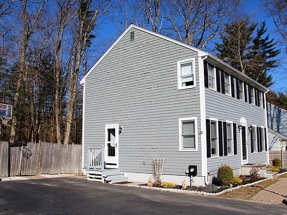 Welcome to French's Crossing! This beautiful and impeccably maintained colonial is awaiting new owners. Bright and sunny this home will warm you as soon as you enter. The bumped out kitchen, with a large island, newer appliances and dining area leads to an oversized deck, great for back yard barbecues. The fully fenced in yard abuts conservation land. Freshly painted and recessed lighting added throughout the living room and dining room/office/or playroom are separated by a lovely staircase to the bedrooms. Master bedroom with walk in closet and two other great size rooms. Large bathroom with a linen closet. Family room, office, storage room and half bath add wonderful space in the basement to finish off this home. French's Crossing is a lovely community featuring a playground, ball field, tree lined streets and sidewalks. Great location for commuting with close proximity to the T. Updates include, new front door, slider to deck, shutters and more. Don't miss this one!