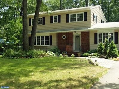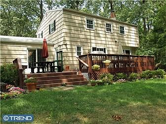 Brick paver walkway provide entry into the foyer of this beautiful 4 bedroom colonial with gleaming refinished hardwood floors throughout the living room & dining room, both with bay windows. Updated kitchen features 42" cabinets with added cabinets & counterspace, tile backsplash & built-in microwave. French doors lead to the family room with built-in bookshelves separated by bay window and new carpeting. Freshly painted throughout. Updated powder room features wainscotting & crown molding. The main bath has been beautifully updated with custom ceramic tile & crown molding. Master bedroom has hardwood floors, custom wood baseboard & door frames, two large closets & an updated master bath with frameless glass shower stall, pedestal sink & crown molding. 3 additional spacious bedrooms complete the second floor. Enjoy entertaining in this great yard with a large deck overlooking the mature trees. Newly refinished basement offers some great additional living space and lots of storage with a new furnace (2012).
