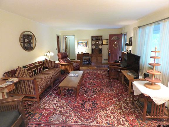 Solid brick faced ranch on 1.5 acres in unique Village location. Privately situated, this home has 3 bedrooms, 2 full baths, energy efficient natural gas heat with central air, hardwood floors throughout, tile baths, full basement, private rear porch and much more. Schodack Schools.
