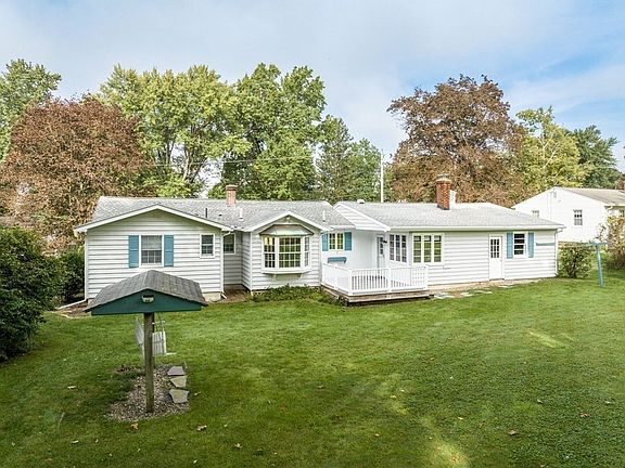 METICULOUSLY MAINTAINED ONE LEVEL LIVING AT ITS BEST! This ranch features a fully applianced kitchen with spacious dining area, plenty of cabinetry, countertops and pantry; Family room with classic built-ins, wood beamed ceiling, brick faced fireplace (with wood stove) leads out to Trek deck with picturesque backyard views; Huge living room; Primary bedroom with double closets and 1/2 bathroom; Lots of polished oak flooring throughout! Additional features include: a newer heating system, vinyl siding, architectural shingled roof, 1 car attached garage, double wide driveway, front patio and plenty of room in the basement to finish off for more living space and storage; Close proximity to the center of town, major routes and points of interest!