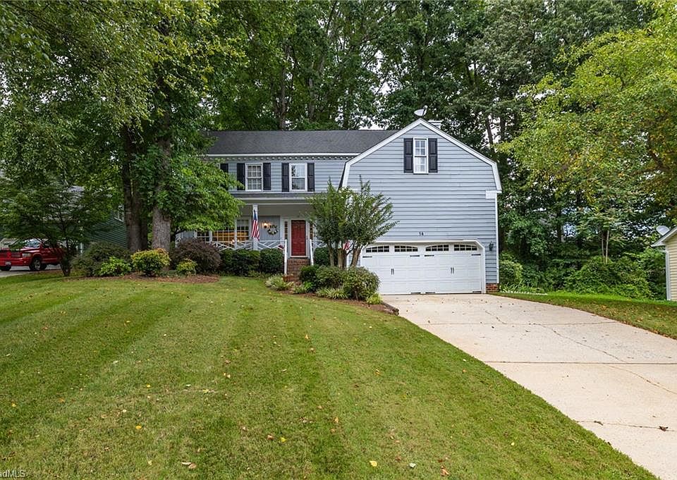 Fantastic location in the heart of Greensboro. Minutes from walking trails & the greenway, PTI Airport, shopping & restaurants. This 4 bedroom home on a cul-de-sac in the quiet Country Woods neighborhood is ready for its new owner. Main-level living offers large spacious rooms, 2 story entry, formal living, dining and open den w/wood burning fireplace to kitchen & breakfast and a beautiful view of the private/wooded backyard. All bedrooms on 2nd floor w/laundry in 2nd full bath w/double sinks & WI shower. Permanent stairs to HUGE walk-in attic, tons of storage throughout home & garage. New garage door, fresh paint, tankless water heater. All appliances, washer/dryer to stay.