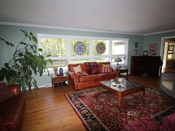 Seldom available, Brick hillside ranch home in desirable Covered Bridge Farms. Home features a circular driveway that allows you to pull up and access the Trex deck and side door to the kitchen and mud room. Continue to the covered slate front porch with swing and enter into the foyer with exposed brick wall, slate floor and walk in hall closet. From the center hall the floor plan opens up to a fabulous space for entertaining! The Great room showcases a wall of windows, site finished hardwood flooring, brick fireplace and pocket French doors into the dinning room and then out into the screened porch that overlooks the treed backyard. The kitchen has been remodeled a few years ago and showcases a cathedral ceiling, gas gourmet stove, stainless steel appliances, granite counter tops and Thomasville cabinets. Hardwood flooring exits throughout most of this 4600 sq ft home. The main level gathering room is filled with light from the large windows and could be converted to an in law suite if needed, the large powder room off the gathering room has room to add a shower and is next to the laundry room. The left side of the home is accessible to the Master bedroom with in suite bathroom and walk in closet along with hall bathroom with dual vanity and 3 additional bedrooms. Descend to the lower level down solid oak stairs and enter into the 2nd Rec room with brick fireplace and walkout onto the slate patio. The 4 car garage is accessible from the lower level and is a great space for any car buff or someone wanting a space for a woodshop. Beyond the rec room area are 2 additional bedrooms or offices and a full bath that was remodeled 4 years ago. The homeowner has made several updates including the roof in 2008 with 1 layer, 30 yr shingles, 2 new heaters and 1 AC, the other is 10 yrs and recently serviced. New garage doors, new hot water heater, water sealed the driveway, garage and unfinished areas in the basement that are great for additional storage and made current upd