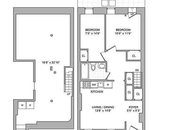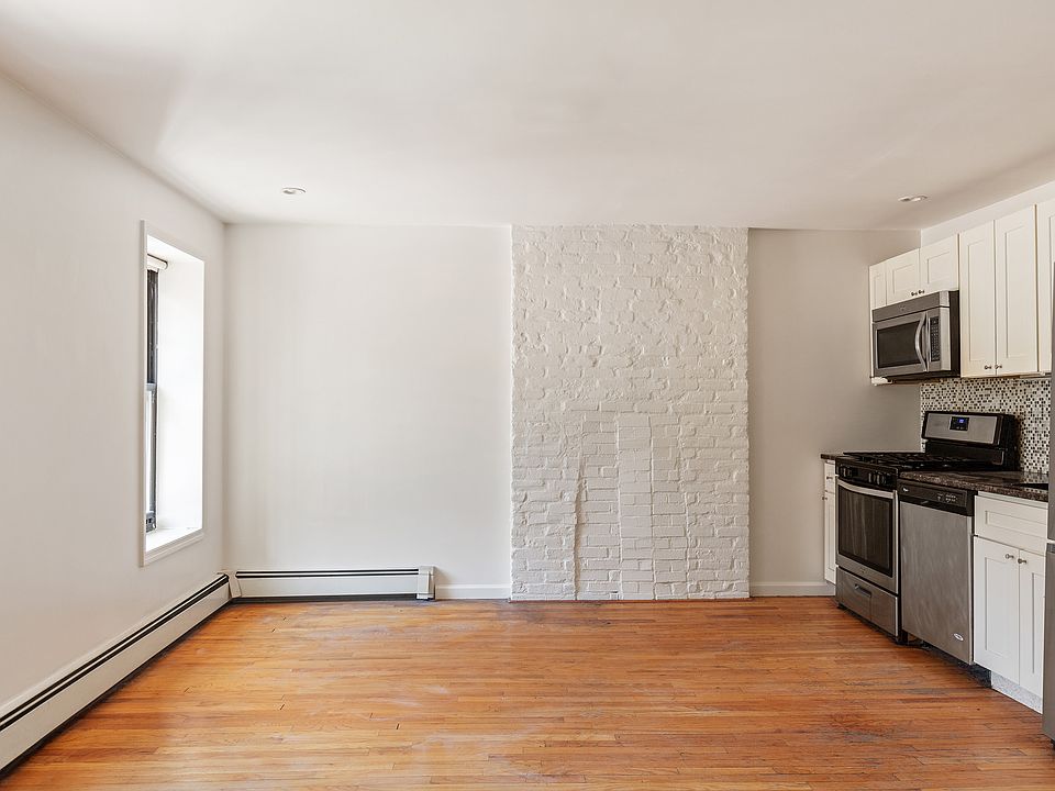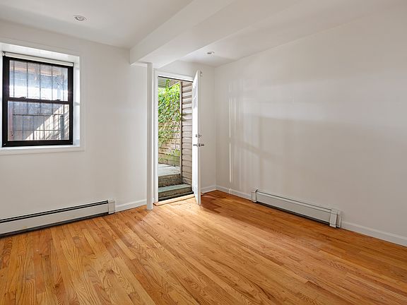 Welcome home to Apartment 1 at 14 Covert Street; a 2-bedroom, 1-bathroom duplex with a large private patio. Enter the home through a proper foyer which opens up to an expansive living room with two large windows facing south allowing for great natural light. Measuring 13' 8" x 14' 8", this open space is ideal for entertaining and allows for a proper living and dining area. Adjacent to the living room is the one-wall kitchen which features ample cabinet and counter space in addition to stainless steel appliances. At the rear of the home, you will find the two bedrooms, both equipped with windows facing North as well as a generous amount of closet space. The larger of the two bedrooms also features access to the back patio and measuring over 200 square feet, is perfect for both relaxing and entertaining. Just off the bedroom quarters is the apartment's bathroom featuring a tiled shower/tub combo and a wood vanity with additional storage space. Other defining features of this home include an additional lower level recreational space, a full-sized in-unit washer/dryer, five closets allowing for a surplus of storage space and hardwood floors throughout. 14 Covert Street is a two-unit townhouse located near numerous bars, restaurants and grocery stores, and just a short walk to the J train to get into Manhattan.