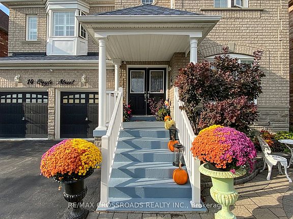 Welcome to 14 Coyle St, a meticulously maintained and luxurious 5+1 Bedroom, 5 Bathroom Home with approx 4000sf of carpet free living. The double-door entry opens to a ceramic-tiled foyer, leading to hardwood floors, crown moulding and potlights throughout the main level. The open-concept living and dining areas are ideal for entertaining, while the family room features a gas fireplace and large windows. The chefs kitchen features ample custom cabinetry including a pantry, granite countertops, b/i oven and microwave, stainless steel appliances, stone backsplash, a centre island, and walkout to a landscaped backyard. A main floor den serves as a fifth bedroom, library or office. The laundry room connects directly to the double car garage. Upstairs, the primary suite includes His & Hers walk-in closets and a 5-piece ensuite. Three additional bedrooms offer ample closet space and natural light; one with its own 3-piece ensuite perfect and an additional shared 3pc bath. The finished basement adds an additional recreational space with a bedroom with a full 4pc bathroom and an additional laundry room. Perfectly situated, this home is just minutes from restaurants, shops, parks, schools, gym, groceries, pharmacy, transit, and so much more!
