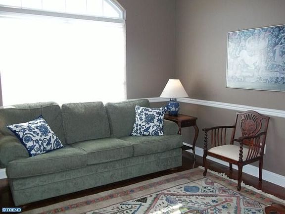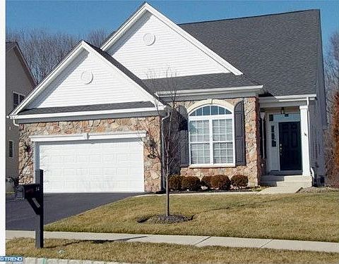 EVESHAM Priced to Sell Immediately! 3 BR 2.5 BA home is abundant in custom upgrades and only 4 years old. Hardwoods throughout first floor, crown molding, upgraded ceiling fans, 9 foot plus ceilings. Beautiful upgraded kitchen with cherry cabinets, stainless appliances, granite counter tops. Family room with gas fireplace, separate lovely library/office with custom built in bookcases. Large first floor master suite with his and her walk in closets and his and her vanities. Outstanding master bath with over sized custom tile shower and upgraded vanity. Covered trek deck that backs to the woods and protected woodlands. Upstairs has additional full bath and 2 large rooms that can be either used as 2 bedrooms or a bedroom and additional family room or bonus room. 2 zone heating and air. Lastly home has full basement with plenty of room for storage or refinishing. To complete the package, seller is offering a one year home warranty. This is an aged restricted over 55 community.