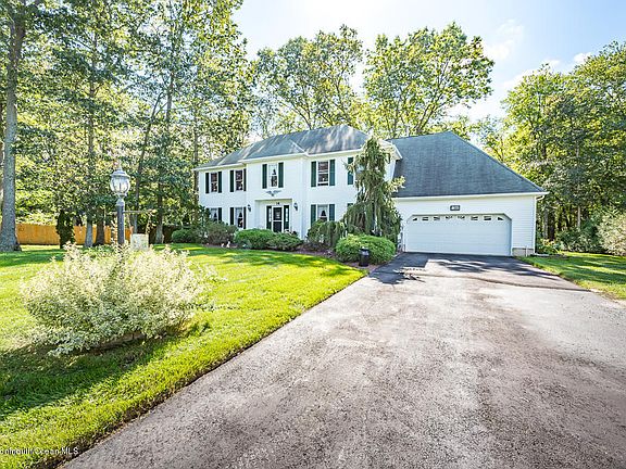 Colonial style home sits on 1.28 archers of park like property. Features 4 bedrooms & 2.5 baths. Well maintained home with 2576 square feet of living space. Enter the 2 story foyer with closet. Formal dining & living rooms, plus family room. Large kitchen with Corian counter tops, oak cabinetry,and separate eating area. The large master bedroom with En Suite features soaking tub, shower stall, double sinks & closet. Step through the slides in the kitchen onto the deck you'll find the enclosed hot tub and serenity while you sit & relax. This home also features: Attic fan with separate thermostat, Ceiling fans, Speakers wired throughout 1st floor & outside. Shed has electric, Upgraded appliances & plumbing, Alarm system, Underground sprinkler systems.One of the lowest $ homes for the area!