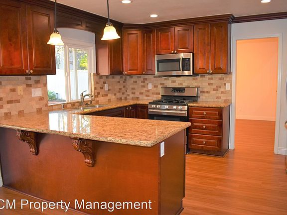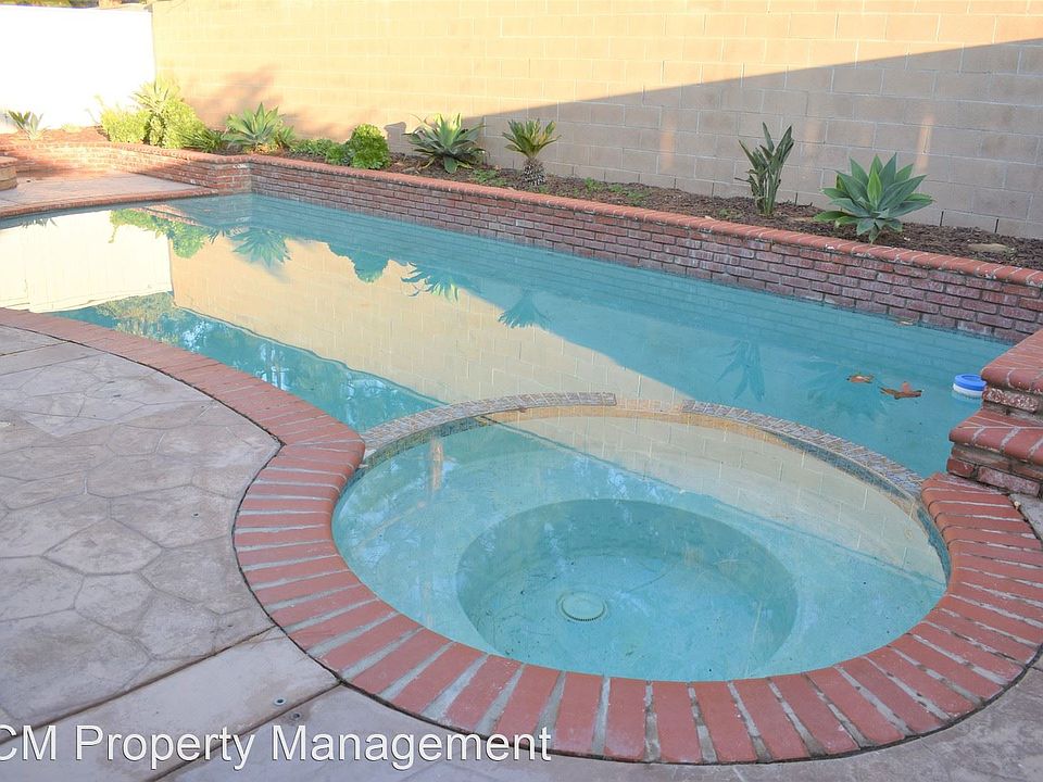 Welcome home to the 5 bedroom, 2.5 entertainment pool home in Northwood! - Immaculate, upgraded single family home located in the Village of Northwood. This 5 bedroom, 2.5 bathroom home is an entertainer's delight with large backyard, pool, spa, fire pit and extra large balcony. The home has been upgraded with beautiful laminate floors, scraped ceilings, dual pane windows and recessed lights throughout. Enter into a large formal living room with high vaulted ceilings. Convenient downstairs bedroom is located next to the upgraded powder room. Kitchen overlooks the family room with french doors that lead out to the backyard. Gourmet kitchen comes fully equipped with upgraded cabinets, granite counters, stainless steel appliances and sink. Upstairs has three secondary bedrooms and a spacious master suite with double door entry and extra large balcony, perfect for summertime lounging. Master Bath is upgraded with dual vanity, granite counters, upgraded cabinetry, walk-in closet, tub and walk-in shower. The secondary bedrooms share a hall bathroom that has been completely remodeled as well. Laundry hookups are located in the two car garage with plenty of storage. Landscaping has been improved with drought tolerant plants. Attend Award Winning Irvine Unified Schools. Close to schools, shopping, 5 freeway, Irvine Spectrum, the Marketplace and more. NO Pets allowed. Ready for move in after August 8th. No Pets Allowed (RLNE4628498)