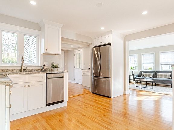 Nicley renovated extended Cape located on a cul de sac near train, park and downtown Reading. Open floor plan on first floor allows for a flexible arrangement of living area. Formal livingroom with fireplace. First floor familyroom right off the new granite kitchen. Bistro eating area in kitchen as well as a formal diningroom. First floor laundry.. All hardwood flooring on first level. New bathrooms on each level. Second floor consists of master suite with a connected nursery/ sitting area/ dressing area. A second bedroom and new bath complete the upper level. There is a third bedroom or home office on first floor. Mudroom / sunroom w electric heat off kitchen. Great level fenced in backyard. New driveway and landscaping. Nothing to do but unpack!! .