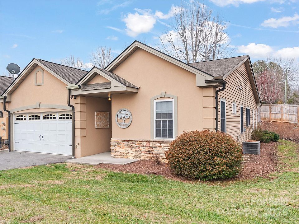 Beautiful sunlit townhome off Old Clyde Road between Lake Junaluska and Clyde, nestled on a small community of Cross Winds of Clyde this community provides easy access to a variety of conveniences including shopping, restaurants, Food Lion, Lowes, hospital and much more. This unit features sunlit rooms, a flowing open floor plan, vaulted ceilings, and captivating single level living. The primary suite also features double closets and a spacious bathroom with a beautifully tiled floor w/double sink with granite countertops, soaker tub and walk in shower. The kitchen is well-equipped with granite counter tops w/breakfast bar, lots of cabinet storage and connects to the laundry room with pantry and attached two-car garage.