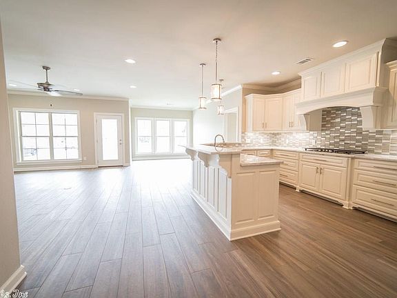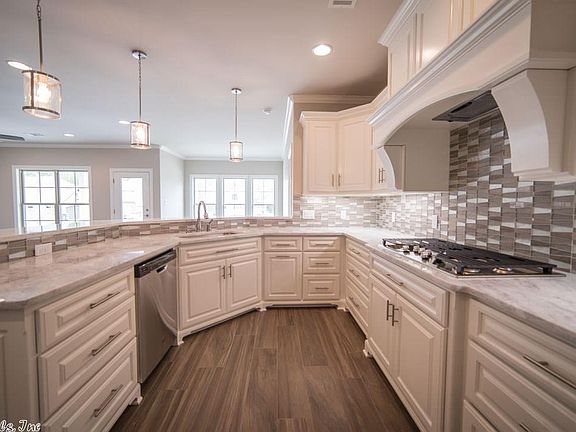 Beautiful new build by award-winning Parkinson Building Group on this quiet corner lot in Chenal Elementary. Tall ceilings +wide foyer +open floor plan. Kitchen: large granite breakfast island w/ custom trim +stainless apps +walk-in pantry. Large windows. Dining & hearth/living. Covered patio. Vaulted ceiling Master is separate: his/her knee-space vanity +walk-in shower +tub +walk-in closet. Mudroom: built-in lockers + Laundry. Near Promenade & Wildwood Park (105 acre botanical garden: trails + events).