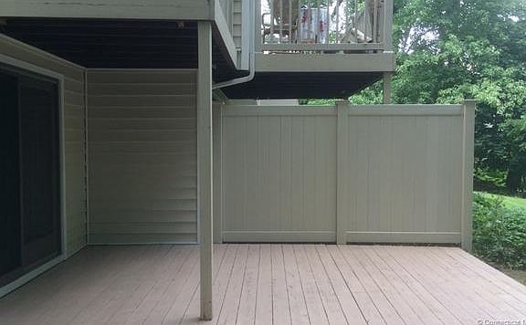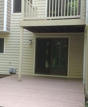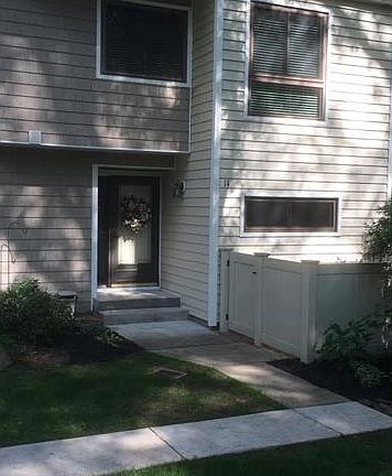 Act Fast!! Desirable, 3 bedroom, 2.5 bath end unit on cul-de-sac overlooking private wooded area. Enjoy the quiet natural setting from the freshly painted upper and lower decks. Master Bedroom with walk-in closet, private bath and spectacular views. Partially finished lower level with walk-out. Updated kitchen with built-in GE appliances and new refrigerator. Updated bathrooms. Powder room with granite counter and Kohler appliances. Ceiling fans. New energy efficient windows and sliders. Custom blinds. New Hot Water tank, July 2015. Washer and Dryer included. Newer low maintenance economical Heat pump /AC system. Garage with electric opener and key pad; extra storage at rear of garage; with additional marked parking space. Enjoy a Staycation at the Olympic sized pool and separate kiddie pool; the Community Clubhouse can be rented for private events; New playground / Tot lot and Tennis Courts. Special assessment paid. This unit is ready for quick sale and occupancy Seller motivated. HOA fees include: Association insurance; Grounds maintenance; Property Management; Snow Removal; and Trash Removal.