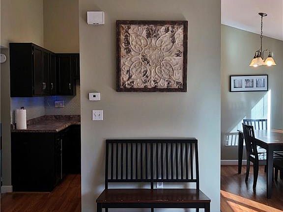 Spotless and freshly painted! There is nothing you need to do but move in to this adorable condo. Located in desirable Hamlet Manor, this 2/3 bedroom, one and a half bath home has everything you desire. Walk right in to your bright and sunny living room which boasts a cathedral ceiling and fireplace with an open floor plan which leads you right to your updated kitchen with its sparkling glass backsplash, gleaming laminate floors, and updated stainless appliances. The upper level houses your master bedroom and full bath plus a roomy 2nd bedroom, both with plenty of closet space. Both of these bedrooms look out into your lovely tree lined backyard. Now the lower level is where the action is at! This spacious tiled family room, laundry room/half bath and 3rd bedroom or office are located down here along with access to your 2017 paver patio that just begs for a backyard BBQ! Whether you are entertaining guests or just relaxing and enjoying the view, you will feel right at home in this updated, charming home. Large parking area with two assigned spaces plus ample visitors spots and lovely landscaping make coming home a dream.