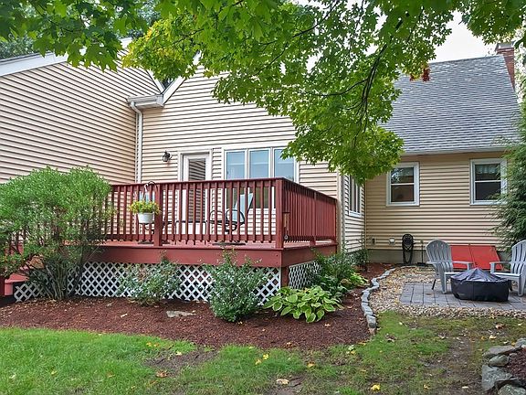 Open house cancelled. Extremely well maintained saltbox colonial in amazing neighborhood. This home has a beautiful flat backyard that abuts conservation land offering loads of privacy. In 2005 the current owners added a large 2 car garage with a walk up attic (could be used for future expansion!), a vaulted ceiling sunroom, a tiled mudroom with side entry, and a large deck. Thoughtfully designed living space inside and outside. Young roof, furnace, water heater, & windows. Fully finished basement ideal for workout area, work at home office or playroom. Unfinished area with a workshop. Fireplace in family room for cozy winter nights. Large deck overlooking the backyard and a patio with a fire pit. This house is a gem.