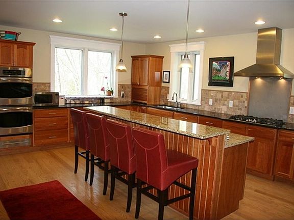 <br>House original designed by Milton Grigg http://en.wikipedia .org /wiki/Milton_L._Grigg). House totally renovated in 2009 and overseen by architect Kurt Wassenaar. Large soap stone pergola covered greeting area to the front of the house. Gallery foyer that offers access to all areas of the first floor. Center family room w/hardwood floors, lots of natural light from windows. French doors that access pergola covered patio with double side fireplace (one side in the family room, the other side on the patio) great for exterior entertaining. Open spacious kitchen, dining area with lots of custom cherry cabinetry and granite counter space, upscale stainless steel appliances (double oven, gas cook top, warming drawer, refrigerator, dishwasher), two sinks, large entertaining island/bar, hardwood floor. First floor master suite w/private study. Master bath w/glass shower, garden jetted tub, ceramic tile, his/her granite top vanities. First floor laundry. Partial basement. Situated on a 2.79 acre private lot overlooking a pond. Paved drive. Single car garage.
