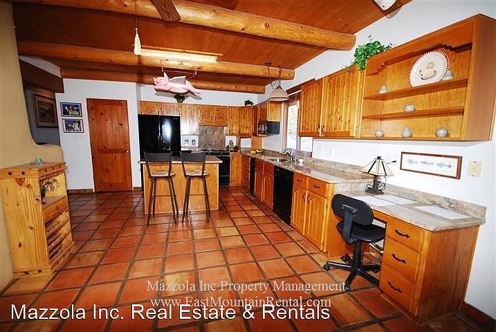 Classic 2-story Pueblo-style with fantastic views of Sandia Mountains and Sedillo Valley, 3-4 BR / 3 full baths, open living floor plan, Southwestern vigas & latillas, master suite upstairs, guest suite downstairs (could also be master), home office / library or 4th bedroom, knotty pine and granite kitchen with walk-in pantry, front porch, full deck, covered back porch with solar shades, south-facing passive solar orientation, radiant in-floor heat throughout plus circulating heat kiva fireplace in vaulted ceiling great room, garage workshop & built-in cabinets. 5 acres partially wooded with fenced pastures plus Invisible Fence installed for dogs, 3 field faucets for irrigation, 2 barns (incl 1 horse stall), 2 chicken coops. Entranosa community water service. Great property for permaculture or self-sufficient living. Plan to list FSBO March 2012, but welcome earlier inquiries.