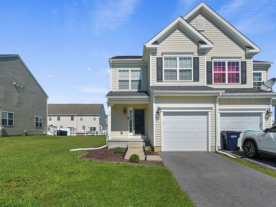 Welcome to 14 Dilworthtown Drive! This meticulously maintained semi-detached home is nestled in the highly sought-after community of Worthington, offering a serene retreat with all the modern conveniences close at hand. The charming curb appeal begins with beautiful landscaping and an inviting covered entry that beckons you inside to discover the thoughtful details throughout its three levels of finished living and entertaining space. On the main level, an open and airy floor plan welcomes you with a blend of style and functionality. The gourmet kitchen stands at the heart of the home, featuring a double sink, ample counter space, 42" cabinetry, a sleek glass tile backsplash, and a convenient island with a breakfast bar for casual dining. Flow effortlessly from the kitchen to the dining area and living room, making this space perfect for both everyday living and hosting guests. The living room provides a generous gathering area, ideal for entertaining or cozying up with a good book. Step outside to the elevated deck, where al fresco dining and peaceful outdoor moments await. Upstairs, the primary suite offers a luxurious retreat with a spacious walk-in closet and a spa-inspired ensuite bath, complete with a dual-sink vanity, a stall shower, and a soaking tub. Two additional well-sized bedrooms, a hall bath, and a convenient laundry center round out the upper level, making day-to-day living a breeze. The finished lower level expands your living space with a versatile family room or bonus areaperfect as a media room, home office, or even an additional bedroom. Plus, the unfinished room with rough-in plumbing for a powder bath offers endless possibilities for customization. With an attached garage providing interior access, this home is as practical as it is beautiful. Located just minutes from Route 1, shops, restaurants, schools, and medical offices, this home offers the perfect blend of comfort and convenience. Schedule your private tour today and experience the epitome of gracious living!