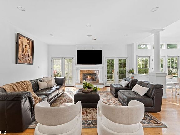 A HOME OF SCALE AND REFINEMENT, where soaring ceilings, abundant natural light, a gourmet kitchen with center island, and refined Details create a residence that is as functional as it is breathtaking. Every space is thoughtfully designed to balance elegance with ease, making it the perfect backdrop for both lively entertaining and quiet moments at home. The main level offers three spacious bedrooms and a dedicated office, complemented by two full baths and a stylish powder room. The 2020 chef's kitchen, equipped with Sub-Zero and Viking appliances, flows seamlessly into the living and dining areas, enhanced by built-in speakers and a gas fireplace that sets a warm and inviting tone. On the lower level, the home opens to an entertainer's retreat with a full bar, additional full bath, laundry, and a potential guest room. A walk-out design connects directly to the park-like level property, complete with a two-tiered stone patio ideal for gatherings, play, and private enjoyment of the outdoors. The primary suite crowns the residence with two Juliette balconies, a generous walk-in closet, and a spa-like bath that defines relaxation. completing the home is an oversized three-car garage with an EV charger, ensuring every modern convenience is at hand. 14 Dorset Lane is a residence that seamlessly blends elegance, comfort, and outdoor beauty creating a home to be lived in and loved for years to come. Close to Hartshorn, Gero Park, MidTown Direct Express train and shopping.