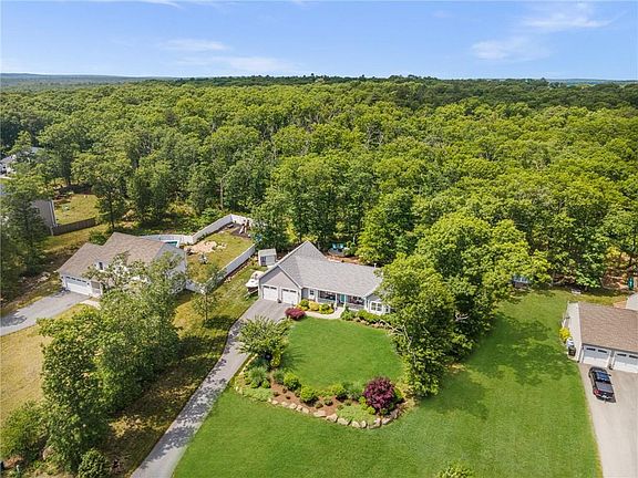 Enjoy peaceful luxury in this modern, three bedroom ranch in desirable Oak Hill Estates. Built in 2015 and set back on professionally landscaped grounds on a quiet cul-de-sac, this property is turnkey inside and out. Enter into a bright, spacious, open floor plan living room, kitchen and dining area with hardwood floors and vaulted ceilings. An upgraded chef's kitchen, featuring a large island, granite countertops and GE Cafe Series stainless steel appliances, overlooks a dining area and living room with a gas fireplace. It's a great space for entertaining family and friends or just cooking a relaxing meal at home. This spectacular floor plan features a spacious master bedroom, with a large walk in closet, and master bath with double vanity, powder room area and stand up shower. Conveniently located in a hallway outside the master suite, you'll find the laundry area, a half bath and lots of closet space. On the other end of the home, you'll find two more bedrooms, perfect for a home office, and a second full bath. Venture outside and you'll find peace and serenity! The backyard abuts conservation land for the ultimate privacy. Relax on the front porch, back deck or outside fire pit area. There's a fenced in backyard, central air, whole house gas fired generator, underground sprinklers, tank-less on demand hot water, underground sprinklers, gutter guards. This home has it all!