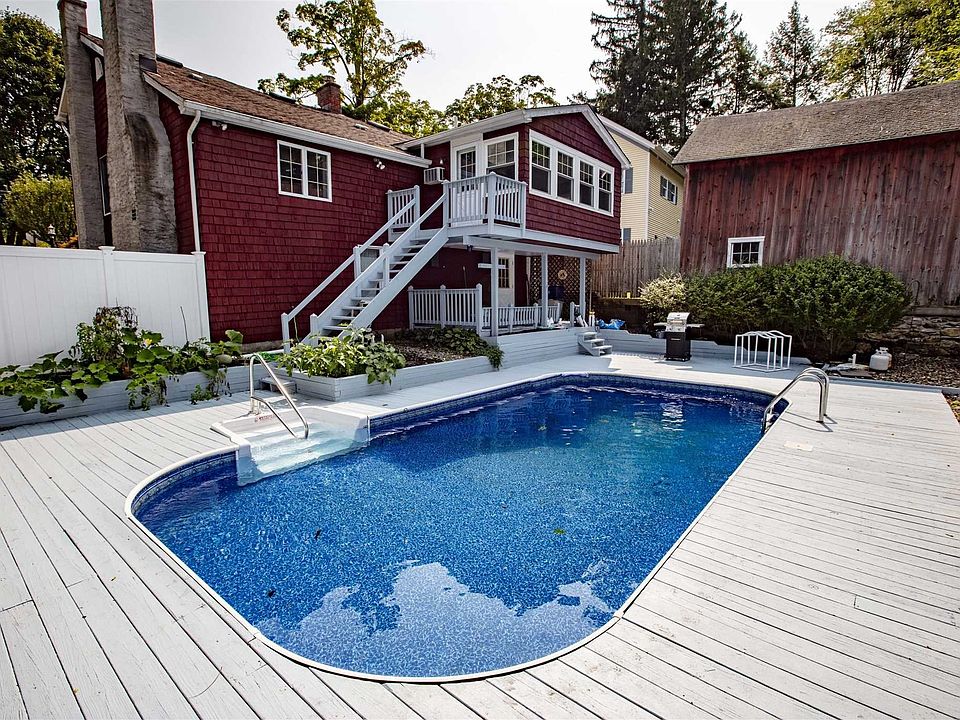 Antique Village of Pawling Charm! This Wonderful 1852 Colonial is so warm and welcoming, with its classic covered front porch, brick walkways and gardens. Walk to quaint shops, Metro-North train, restaurants, library, more! Inside this special home is a large, inviting Living Rm, lovely Dining Rm w/hardwood floor & vaulted ceiling, and spacious Kitchen with hardwood floor, great dining peninsula, stainless range & refrigerator. Charming 1st floor en suite BR (currently enjoyed as a Family Rm) offers original wideboard floors and a raised hearth fireplace. There is also a sun porch with a western sunset view and access to the large, privately fenced inground pool and deck. Upstairs are two nice bedrooms with good closets, a full bath & an office area. Huge walk-out basement has several rooms, multiple uses. Door leads to the lower level covered porch, huge deck and a sparkling inground pool. Home has always been well-maintained! Summertime is a breeze w/central air, swimming, & rocking-chair front porch! STAR rebate of $889.