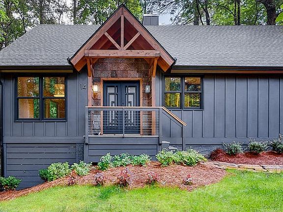 Back on the market, no fault of the seller! Walk-to-town new renovation in Mirror Lake! This home has been completely transformed into a beautiful Highlands mountain retreat with all new zoned HVAC system, roof, windows, cement board siding, gutters, plumbing, and electrical. Enter through new custom metal double front doors accented with poplar bark siding and beautifully stained pediments. The soaring vaulted great room with its impressive beams, ship lap ceiling, two-story stone wood-burning fireplace, wrought iron chandelier, and six-inch pine floors will take your breath away. It is complete with remote shades that make it the perfect place to entertain guests or to relax with family. The kitchen offers new cabinetry, granite countertops, stainless appliances, plumbing fixtures, and marble backsplash all accented by brushed gold hardware. A custom breakfast bar flanks the kitchen window, making it the perfect spot for that morning coffee. This three-bedroom, two-bath home offers a primary suite on the main level and an additional primary suite on the second floor. The baths have been completely renovated with new vanities and lighting, and both offer full tile/stone walk-in showers with frameless shower doors. Enjoy the quiet privacy from the vaulted covered porch and grill deck that overlooks a nice level lot with lush landscaping. The lot can easily be fenced for pets. In addition to two finished levels, this property offers a full basement with electrical that is roughed in for a future bath. Interior stairs can be added for access. On the basement level, there is covered parking for your golf cart and plenty of space to store your kayaks! The stone drive allows parking for four cars plus the town has approved plans for a two-car garage addition. Make this your forever mountain home or a vacation rental with a 30 day minimum stay. Furnishings are negotiable. *Sellers are licensed NC agents.