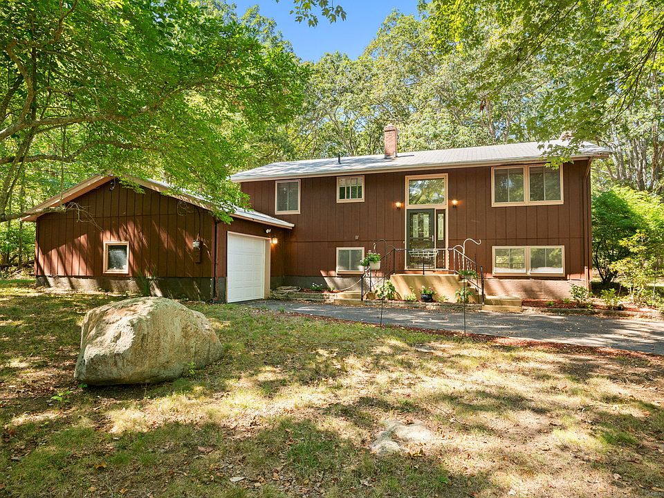 Four-bedroom, 2.5 bath reverse raised ranch located in the desirable Pheasant Run subdivision defines "sweat equity" ... Upstairs offers three bedrooms, one full bath, a primary bedroom with a second full bath, and hardwood floors throughout. The lower level features a 22x20 living room with a fireplace, as well as an additional 650+ sq ft of space, including a kitchen, breakfast nook, and family room, awaiting your finishing touch. New System 2000 boiler, one-car garage, paver patio, semi-private setting, and conveniently located within minutes of the Subase, Electric Boat & Coast Guard Academy.