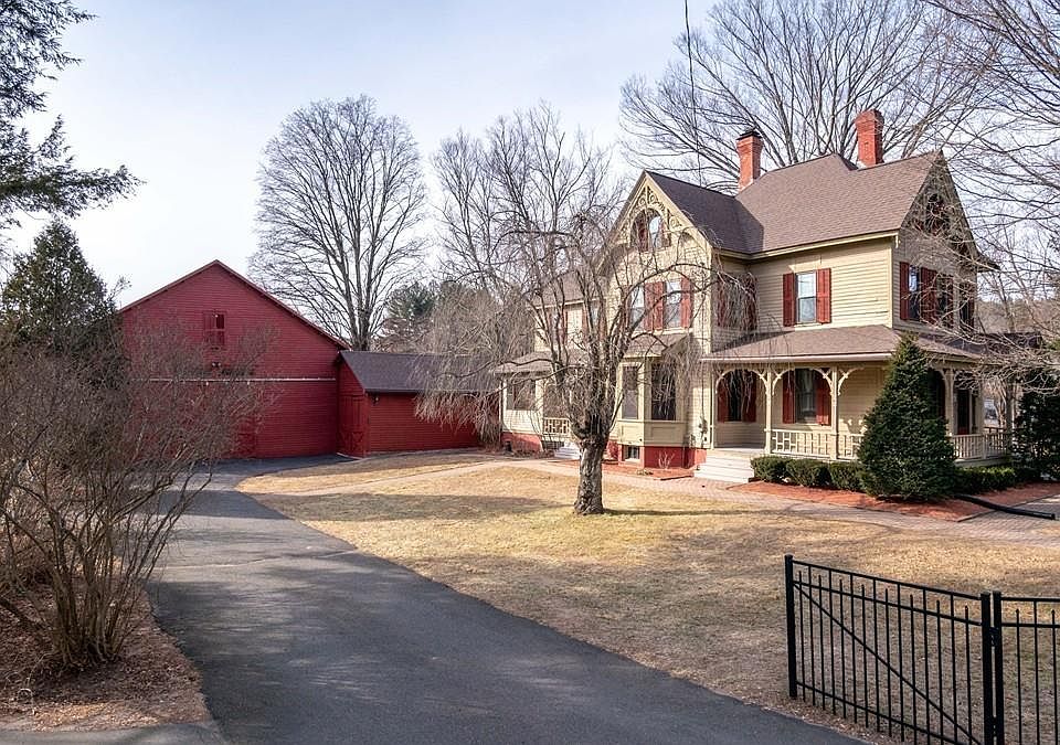 This unique property reflects that magical merging of modern conveniences with Old World Charm.Enjoy the comfort of central AC, the peace-of-mind of a whole house generator and new windows while admiring the craftsmanship and character in the detailed woodwork, hand carved fireplace,gorgeous built-ins and gleaming hardwood floors. Great for entertaining, this country estate with fantastic floor plan sprawls outdoors from the covered front and side porches with updated tongue-and-groove composite flooring to the enclosed sun room and large covered brick patio, heated in-ground pool and tranquil backyard. Placed on 3 acres of lovely rolling pastures, there's always something in bloom and full of color. This retreat is perfect for the horse or hobby enthusiast with structurally updated large barn with horse stalls and plenty of room to make it your own.Meticulously maintained, this home is located in the historic center of town, pleasantly abutting Conant Park. Close to MA Pike and I-91