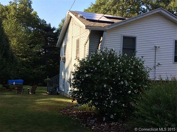 Captivating, move in condition 4 bedroom, 2.5 bathroom raised ranch. Located on 2.5 acres. Beautiful gardens and large back yard that leads to the forest. New solar panels for green living and full southern exposure. Updated windows, new electric garage doors, custom front door, new stainless appliances, stackable washer/dryer, 4th bedroom is located on lower level, very open concept dining and living room area. Hardwood in kitchen, dining, hallway, and living room. 3 season pine room with multiple windows overlooking quiet rear yard off of dining room. New tile in entrance foyer. Newly renovated lower level laundry room with half bath. Lower level family room with large bay window and area for wood stove hook-up. Master bedroom with full bath, and sliders leading to deck. Living room fireplace has custom mantle. Close to Shenipsit Lake, Shafran Conservation area, 3 miles from Crystal Lake, 3 miles from town center.