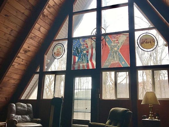 Rustic Charm filled "A" Frame nestled on a beautiful wooded lot, is waiting for those that may prefer this as their permanent home or for those venturing to the mountains for Skiing Adventures! Perfect lil getaway for sure. Typical wooded frame home with 2 story great room featuring an abundance of light and it's quite cozy with the wood stove situated perfectly centered in the middle of the home. Natural wood ceilings, master bedroom w/ master bath on the main level and brick stairway leading to the upper loft area w/ 2nd bedroom....and if you are adventurous...use the ladder to get to a 3rd level. Home is surrounded by nature and if you are lucky like me....You will see deer passing through the yard while sitting off the front deck or even the back deck. So....this may be your Nature escape or Skiing Chalet for weekend visits....but take time to plan a visit and then you may decide to call this home or your favorite getaway!