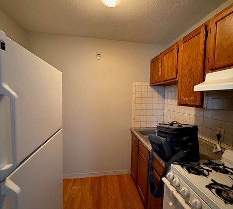 Cozy first floor apartment recently painted and professionally cleaned. You could describe this as a 1 bedroom split or 2-room studio. What this means is there is a kitchen, living room, bedroom and bathroom but you have to walk through the bedroom to get to the living room and kitchen. Good for one person but probably too small for a couple. Located in a well-managed building with on-site laundry. One parking space available for $75 / month. Super convenient location walkable to shops and the T. Available starting Feb 1.