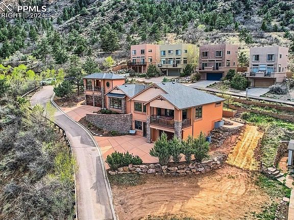 This one of a kind, custom-built home in Manitou Springs is a dream. Once you step inside, you're welcomed with brilliant hardwood floors. The spacious living room is ideal for relaxing and the cozy gas fireplace creates a warm ambiance on our chilly Colorado evenings. The gourmet kitchen features everything you'd desire, double ovens, stainless steel appliances, granite countertops, custom cabinetry and an abundance of prep space. Adjoining the kitchen is the dining area, a perfect spot for hosting gatherings with a walkout patio for you to also appreciate. Wake up to stunning mountain views from the comfort of your own bed. With access to your private deck and hot tub, sit back and enjoy the breathtaking views of nature's splendor. The luxurious ensuite bath is your personal spa, with a glorious clawfoot bathtub, walk in shower and double vanity. Secondary bedroom has its own deck access, along with large windows to take in the beautiful mountain views. The spiral staircase leads you up to yet another large deck where you will enjoy summer mornings with a cup of coffee watching the sunrise over Garden of the Gods. The large finished walkout basement would be a great family room, or game room. There is an additional bedroom and bathroom in this open concept lower level . Don’t forget the 2+1 car garages and the large laundry room with utility sink and generous amounts of cabinet space. Downtown Colorado Springs is just a short drive away, offering an array of dining, shopping, and entertainment options. With it’s tranquil surroundings and breathtaking views of Garden of the Gods this is a opportunity you don’t want to miss!