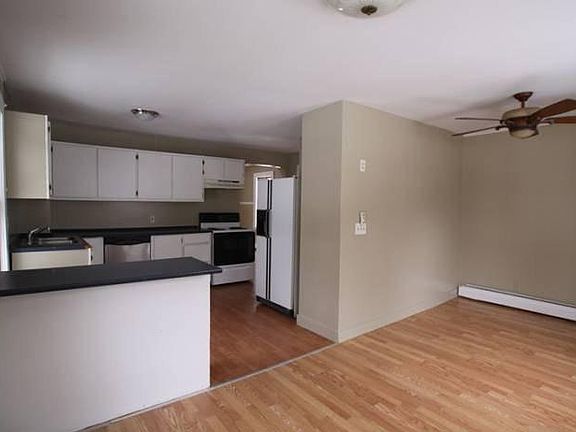 3 bedrooms 1.5 bath first floor all hardwood laminate flooring second floor new carpet. Range ref and diswasher included. Half bath on ground floor, second floor full bath tile floors and walls, washer/dryer hookup in basement Oil heat hot water off furnace. great location off First Rangeway with large lot. Dog under 15lbs or cat allowed with separate pet agreement. Call 873-6483 for info and directions/viewing