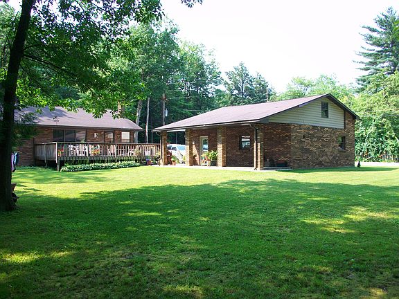 Brick ranch, with detached 2 story garage and covered side patio. New 16' x 28' deck, roof 3 years old. House sets on corner 1/2 acre lot. Fireplace and kitchen in finished basement.