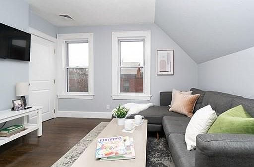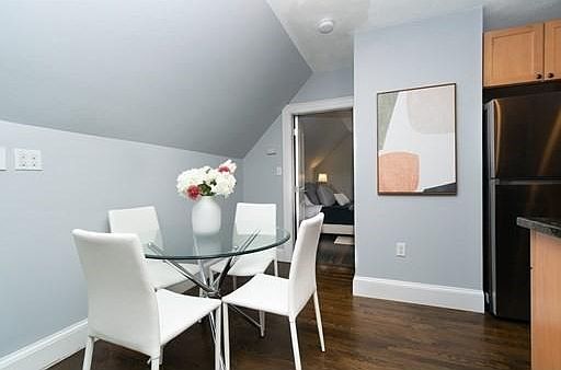 Located in the heart of vibrant Davis Square and adjacent to the Bike Path with a 97 Walk Score. A short 2 minute minute walk to the Red Line T station, independent shops, bars, coffee shops and a wide range of restaurants. Fast commute to Tufts, Harvard, MIT, Downtown Boston, and Kendall Sq, Cambridge. Bright and sunny top floor 2009 renovated unit with open plan, hardwood floor, skylights, in-unit laundry, and exclusive use rear deck. Updated kitchen with stainless appliances and granite counter. Cheerful renovated bathroom with tiled tub/shower and skylight. 1 car parking directly in front of the house. Note: Parking not deeded to the unit. Parking is on a private street w/ sign stating "Authorized Parking 14 Ellington". Ample basement storage.