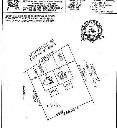 quarter acre; off Grafton Street, Route 122, near South Plaza; corner lot; street is paved, with city water and sewer; ready to build; possible 3 units