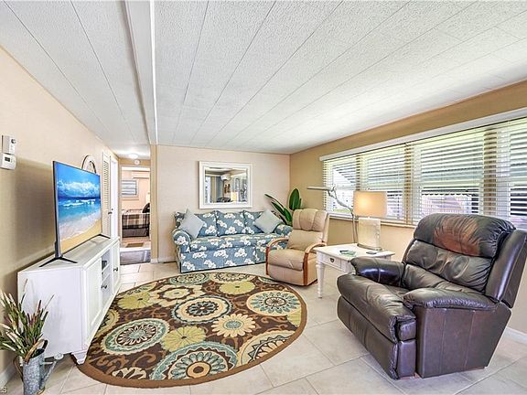 READY TO MOVE IN. Furnished. Enchanting Acres Mobile Home Park, 14 Enchanting Blvd, is a double-wide mobile home. Approx. 1100 sqft under air condition, including the front Florida room. In the rear is a covered Lanai with NOSEEUM screens. This mobile has 2 bedrooms, 1.5 baths. Renovated kitchen with new cabinets and appliance. Main bathroom with shower was completely renovated. Newer windows, single hung, double pane in main mobile and the Florida room has Hurricane impact windows. Florida room is North facing, attached is the carport, the storage area. Plumbing was redone to pex. AC is a new mini-split. Enchanting Acres is an active 55 plus age community. The fees include water, sewer, trash, lawn care and use of amenities. The community has a pool, spa, shuffleboard, clubhouse with a resident kitchen, billiards room, and a library. Located close to Sugden Park, restaurants, grocery stores, beaches, Downtown Naples, Bayshore Art’s District, and more. There is a new Publix across the street from the community. This home is a great get-away, seasonal, or full-time resident home. Minutes away from downtown Naples and Gulf of Mexico. No pets are allowed.