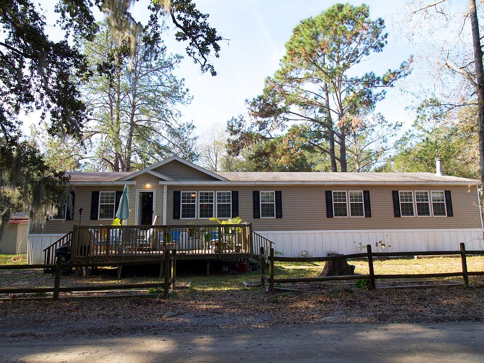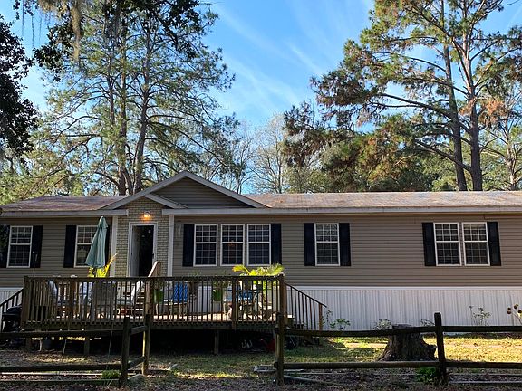 This is a great opportunity to own a very spacious,lovely 4 bed/2 bath mobile home in a peaceful, rural area just minutes away from Hunting Island State Park. Situated on a 3 acre lot with views of arching oaks this home is large enough to meet all your needs. The master bedroom offers an enormous bathroom with a huge walk in closet. The bright, large kitchen and great room with its cozy brick fireplace and built-ins is the perfect area to gather & enjoy quality family time. A full size laundry/mud room answers all your needs and more storage is available in the huge hallway and living room built-ins. With updated laminate flooring, economical new ac unit & outside deck one could almost get lost in this really nice home. Outside a large building/workshop is equipped with 200 amp powe