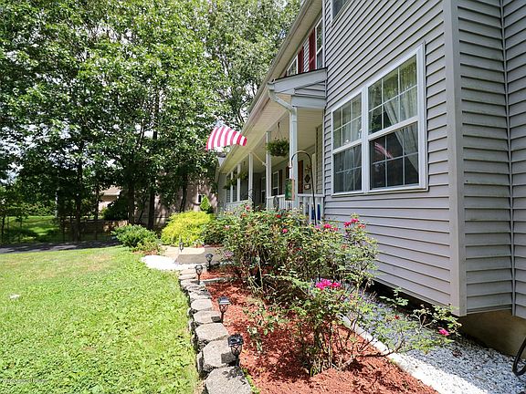 Enjoy a Peaceful paradise in this 4 bedroom, 2.5 bath colonial with full walk-out basement. End of cul-de-sac, on 1.1 acres, which backs up to protected woods. Large living room w/ hardwood floors, kitchen featuring granite counters and stainless appliance package. The family room features a wood burning fireplace and new vinyl plank flooring. Each of the 4 bedrooms is amply sized with hardwood flooring and double closets. The master bedroom boasts 2 walk-in closets and newer bath w/ double sinks and tiled walk-in shower stall. The full basement is partially finished and is a walk-out with sliders leading to the private, & tranquil setting.