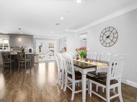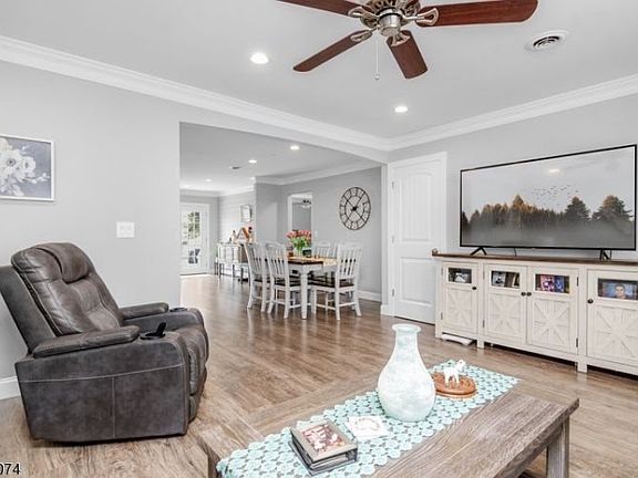Beautifully renovated open concept living! The Cooks Kitchen features shaker cabinets, leathered finish granite counter tops, custom tile backsplash, SS appliances, large center island w seating! The large open living room and dining room features French doors leading to a huge patio with retractable awning! Double crown molding throughout. A large master BR boasts two closets and beautifully renovated full bath. The large guest bedroom and a second full bath complete the layout. The one car oversized garage has direct entry into the laundry room with barn door. Other amenities: recessed lighting throughout, GAS baseboard heat, new A C, public sewer, low maintenance landscaping